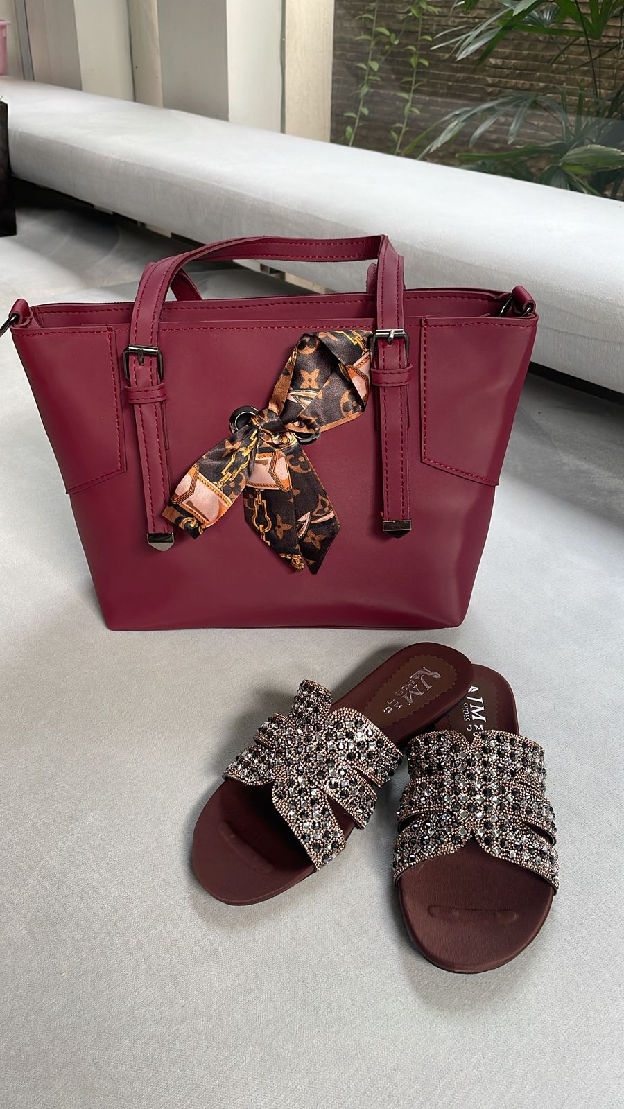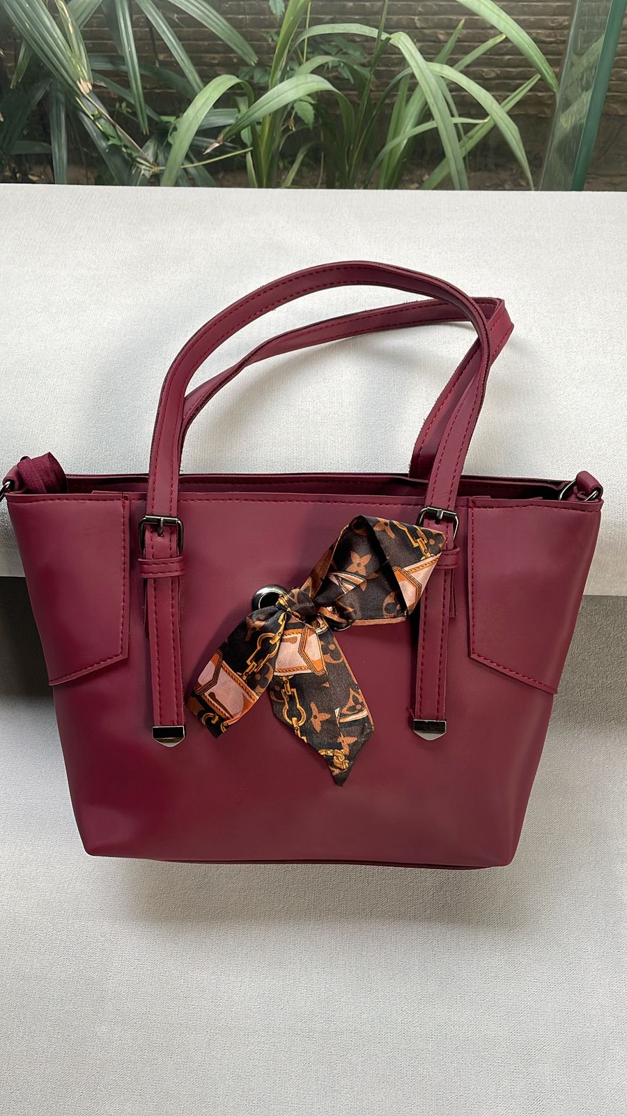Its structured shape and refined detailing make it a versatile choice for both day and evening wear, while the gold-accented scarf adds a hint of opulence to every outfit.