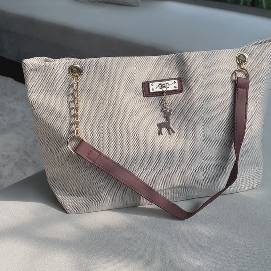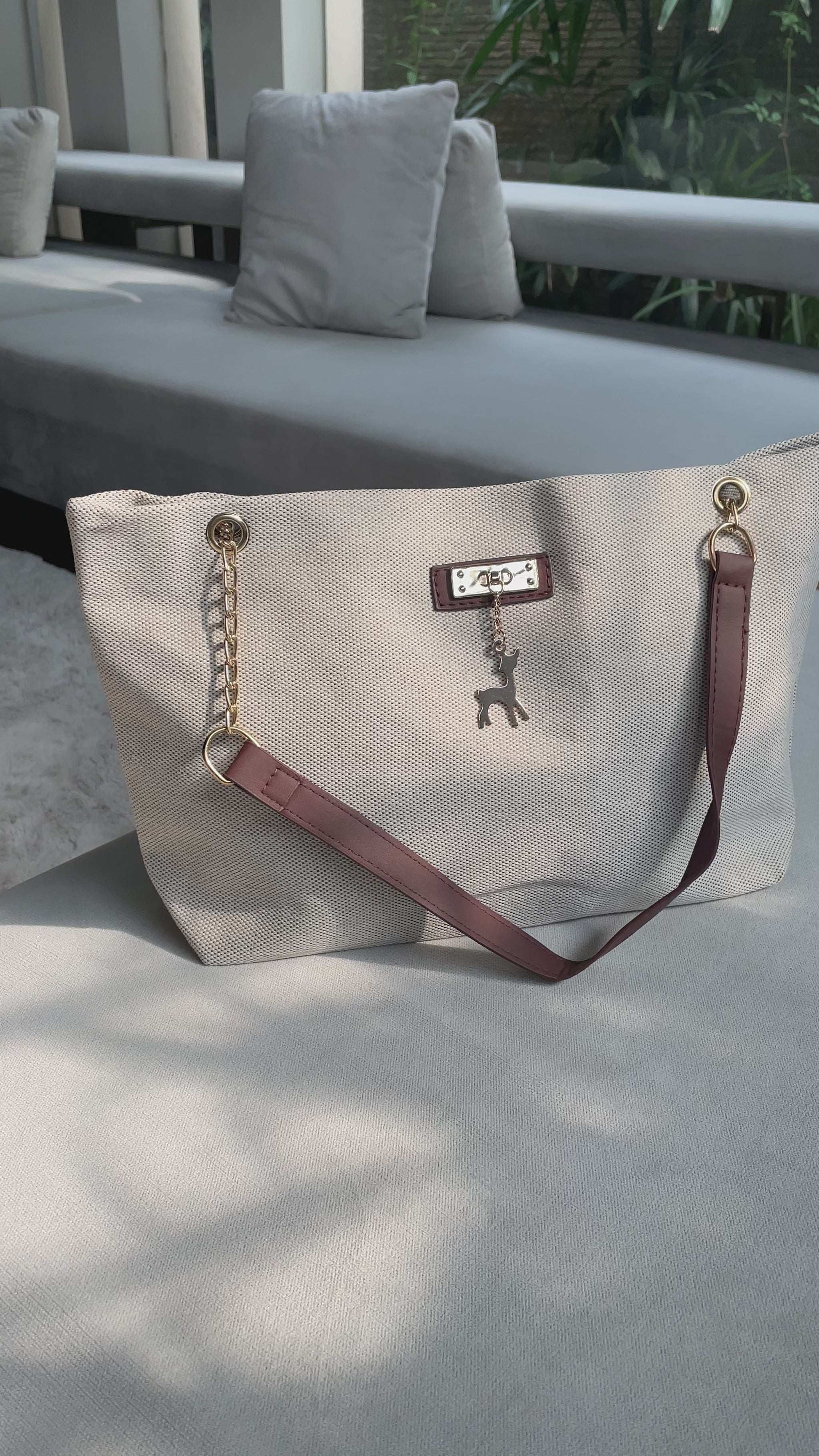Step into timeless elegance with the Midnight Weave. Crafted with a luxurious woven texture in deep black, this tote is elevated by gleaming gold chain handles and a signature deer charm. Spacious yet sophisticated, itβs designed to carry your daily essentials while making a bold style statement. Perfect for work, travel, or evenings out, the Midnight Weave is your go-to for effortless glamour.