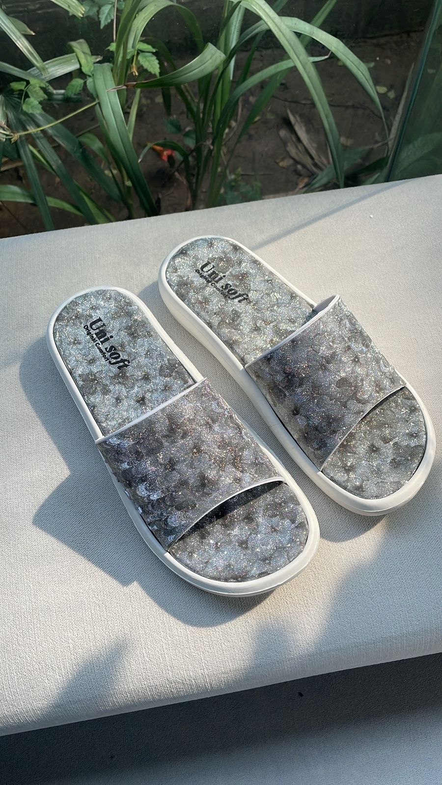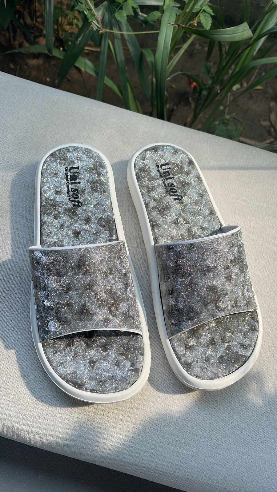 🌙 Soft cloud-grey tone with an elegant bow detail 🎀 Chic emblem for a refined, feminine touch 👡 Ultra-soft sole for all-day cloud-like comfort