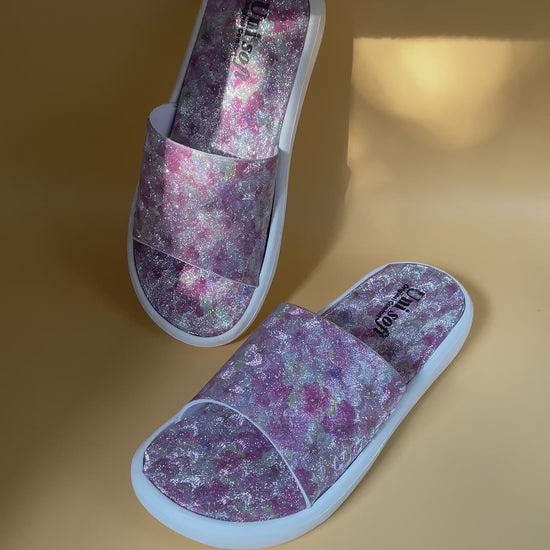 Bring the calm of nature to your every step with Pebble Bloom β a stylish purple slider inspired by smooth river pebbles and dreamy abstract art. With its marbled texture, splash accents, and soft lavender tones, this pair brings a fresh, effortless vibe to your look.