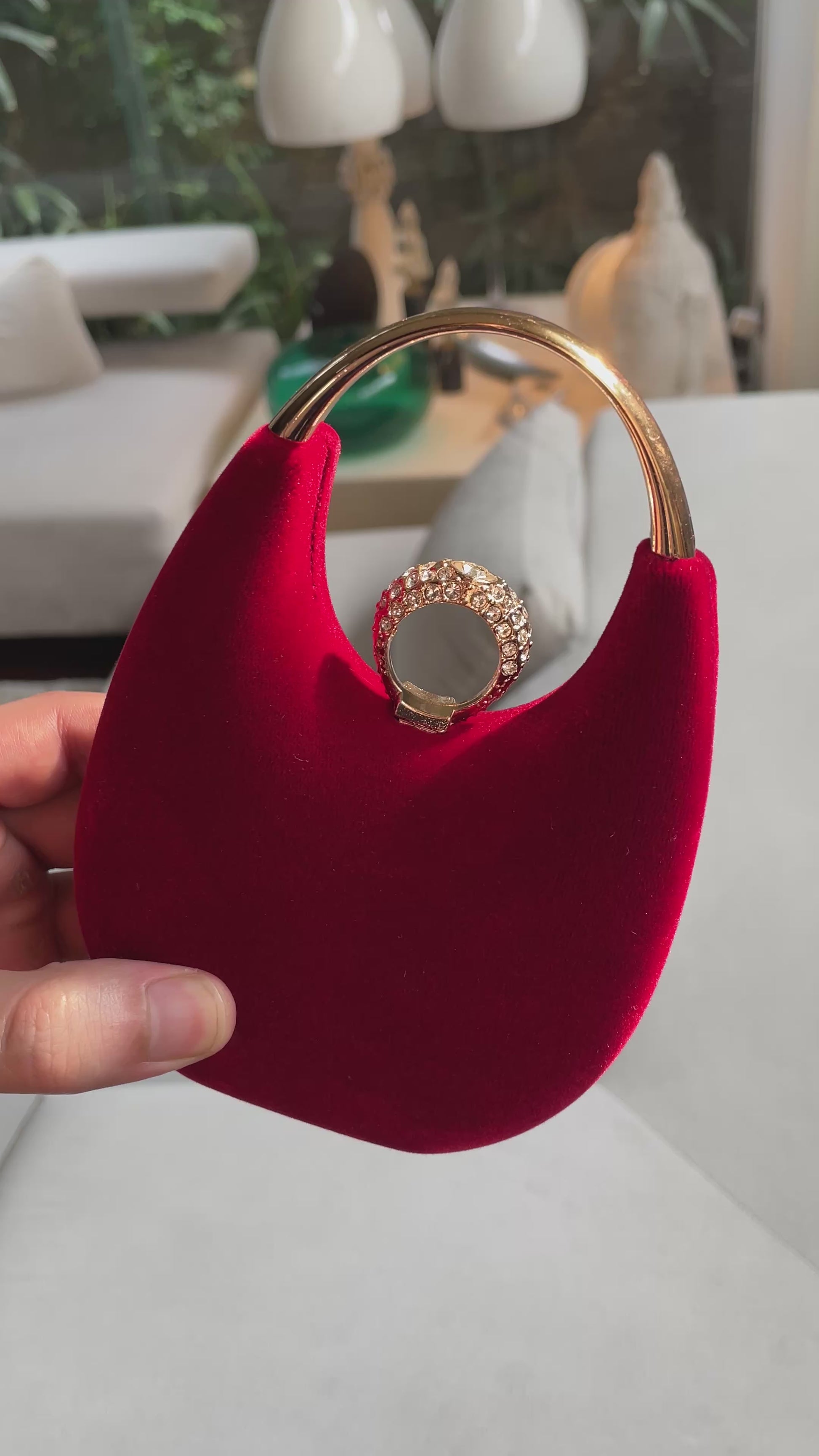 - Premium metallic top handle with a crystal-embellished ring detail for added glam.