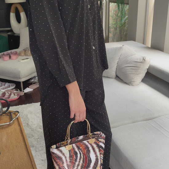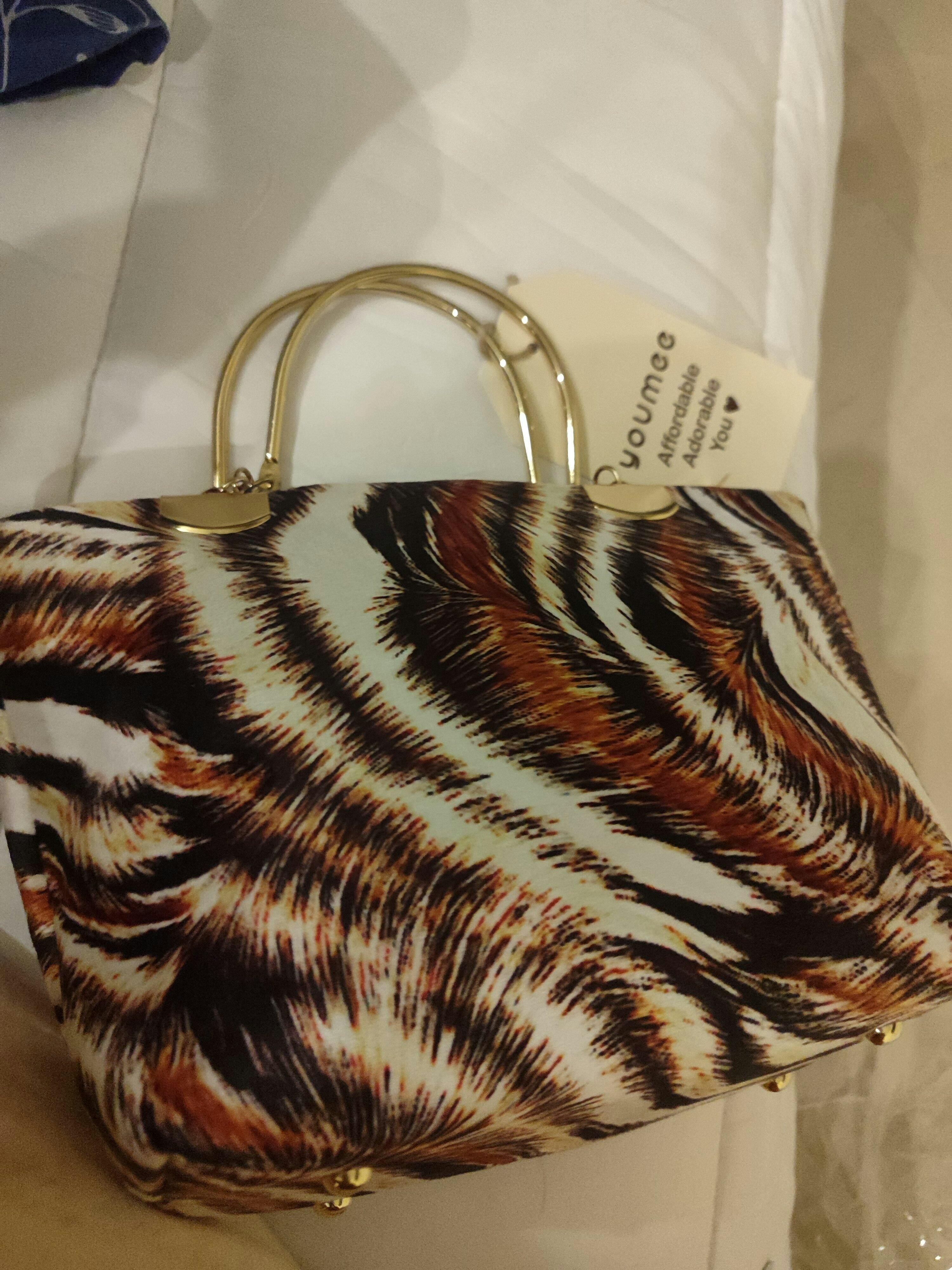 Step into the spotlight with the Youmee Wild Luxe β a statement handbag that blends fierce style with refined elegance. Featuring a bold, animal-inspired print in rich earthy tones and accented with gleaming gold handles, this bag is your perfect companion for turning everyday moments into runway moments. Spacious yet sleek, Wild Luxe carries your essentials with grace, whether youβre at brunch, a meeting, or a night out.